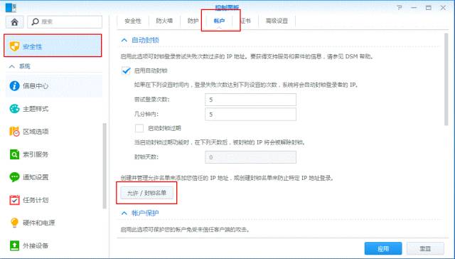現在很多社交軟件包括郵箱都會記錄用戶常用登錄設備及常用IP,以便在出現異常登錄時及時提醒用戶。而在NAS里也可以把在指定時間內登錄失敗多次的IP帳戶自動加入黑名單。